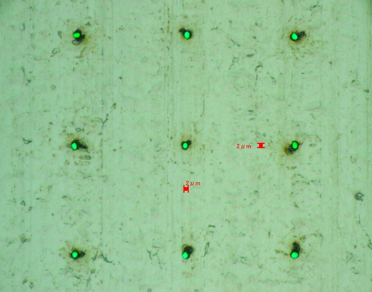 今回の加工では、Φ2µmの微細孔加工に加えて、